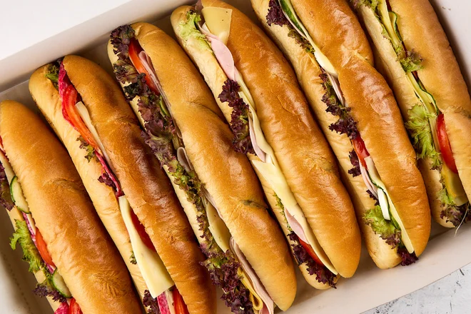 Pochutnáte si na salámovej, šunkovej, syrovej aj lahodnej verzii cisár. Všetky sú pripravené z čerstvého pečiva, nie polotovarov, natreté jemnou majonézou a doplnené o čerstvú zeleninu. V boxe nájdete 6 bagiet rozkrojených na polovicu, takže sa pohodlne servírujú a vyzerajú skvelo na každom stole. Ideálne riešenie na meetingy alebo menšie pohostenie.