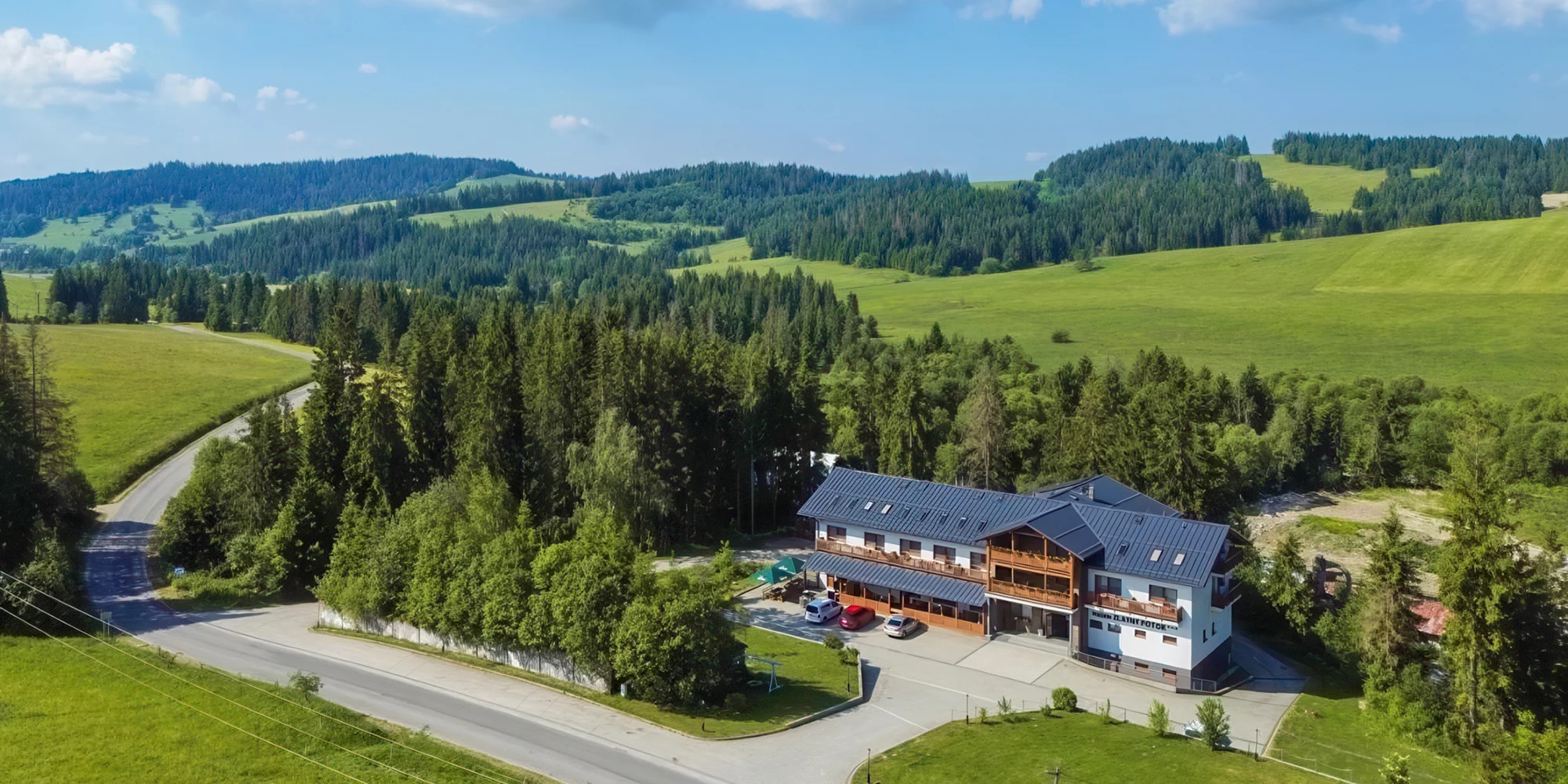 Penzión ZLATNÝ POTOK*** sa nachádza v tichom a krásnom prostredí na Orave v okrajovej časti obce Mútne, neďaleko poľnohospodárskeho družstva, kde si hostia môžu zajazdiť na koňoch a pozrieť si chov hovädzieho dobytku, kačky, husi, emu, sliepky či prasiatka. Toto miesto je ideálne pre návštevníkov, ktorí majú radi pokoj, prírodu, zvieratá a vidiecke prostredie.