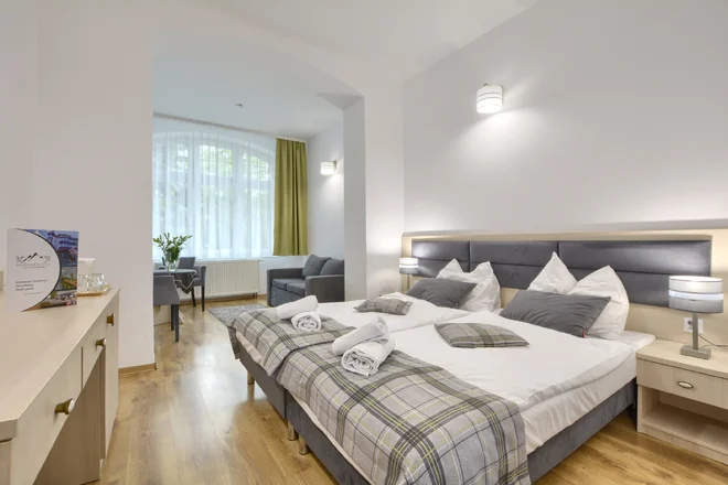 Ubytujete sa v moderne zariadenej dvoj- alebo trojlôžkovej izbe. Vo vybavení nechýba televízor, pripojenie na Wi‑Fi, varná kanvica, chladnička ani trezor. Niektoré izby majú aj balkón alebo terasu s výhľadom na hory. Samozrejmosťou je samostatná kúpeľňa so sprchovacím kútom alebo vaňou.