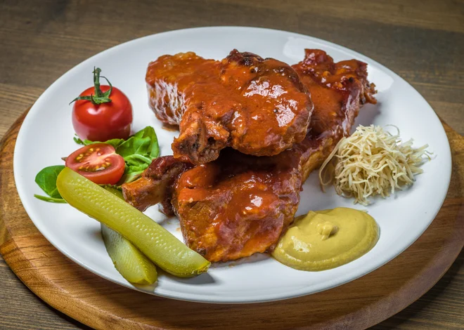 - Jestřebická bravčové BBQ rebrá s horčicou a chrenom, chlieb