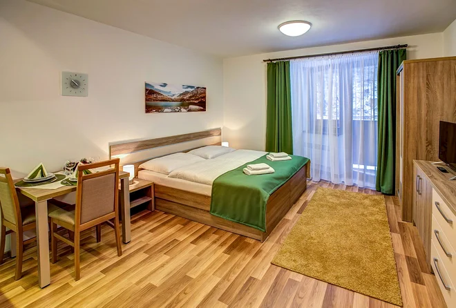 Príjemné a ničím nerušené chvíle budete zažívať v apartmánoch Standard, Family alebo DeLuxe. Niektoré apartmány majú aj balkón a v žiadnej z izieb nechýba možnosť prístelky. Všetky sú zariadené moderne a disponujú vlastnou kúpeľňou i malou kuchynkou. V jednom z apartmánov dokonca nájdete súkromnú saunu. K dispozícii budete mať pohodlné postele, televíziu, trezor, sušiak na bielizeň či jedálenský stôl so stoličkami. Samozrejmosťou je tiež bezplatné Wi‑Fi pripojenie na internet.