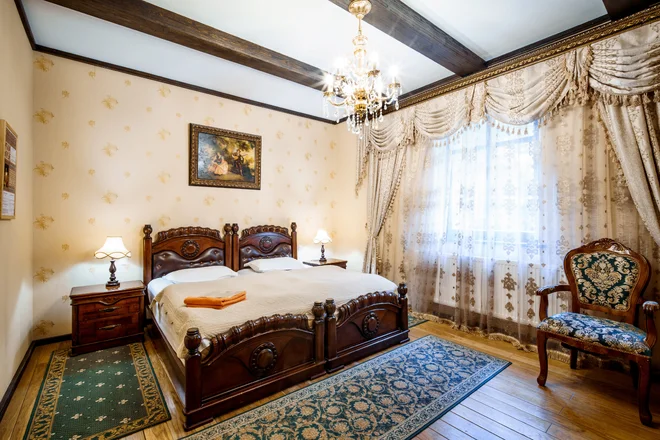 Bývať budete v honosne zariadenej dvojlôžkovej izbe s nábytkom z masívneho dreva. V jej útulnom prostredí môžete oddychovať po wellness či procedúrach. Spať sa vám bude priamo báječne na priestrannej manželskej posteli. Nebudú vám chýbať ani nevyhnutnosti modernej doby – satelitná TV, telefón, trezor a bezplatné pripojenie na Wi‑Fi.