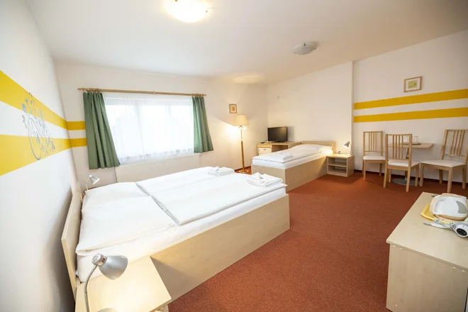 Pripravená pre vás bude moderná dvojlôžková alebo trojlôžková izba s možnosťou prístelky. V kúpeľni nájdete sprchovací kút, toaletu a uteráky. K dispozícii budete mať aj televíziu, Wi‑Fi pripojenie a malú chladničku. V cene máte zabezpečené aj raňajky, aby ste mali dostatok síl na všetky zážitky. Vyberať si budete zo studeného aj teplého bufetu podľa toho, na čo práve dostanete chuť.