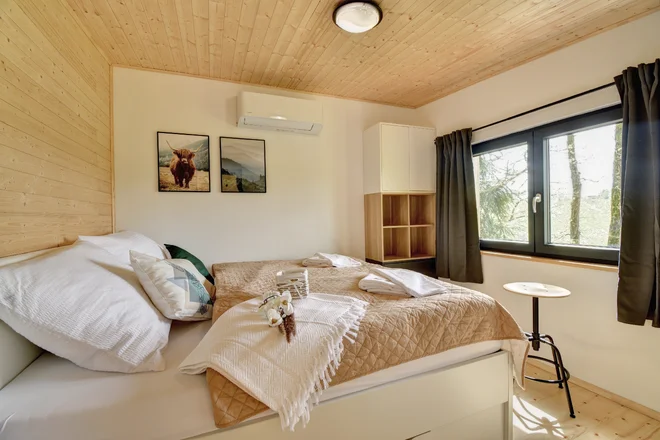 Myslíte si, že chata je len malá búdka so suchým záchodom a solárnou sprchou? To už dávno neplatí! Chaty môžu byť útulné, romantické, ale zároveň moderné! A presne taká je aj Riverside Cabin, kde bude o romantiku aj komfort postarané. Súčasťou chaty sú dve spálne, v každej z nich je jedna veľká manželská posteľ. Ďalšie dve lôžka sú možné na veľkej rozkladacej pohovke v dolnej časti chaty.