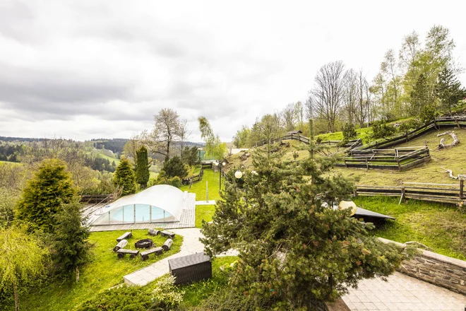 Za hotelom je letná terasa len pre ubytovaných a pred hotelom záhradka s detským ihriskom. Nechýba tu ani prírodné ohnisko, a tak si večer po výlete môžete napríklad opiecť špekačky. V areáli je tiež minizoo, deti budú nadšené. V letných mesiacoch je k dispozícii aj vonkajší bazén.