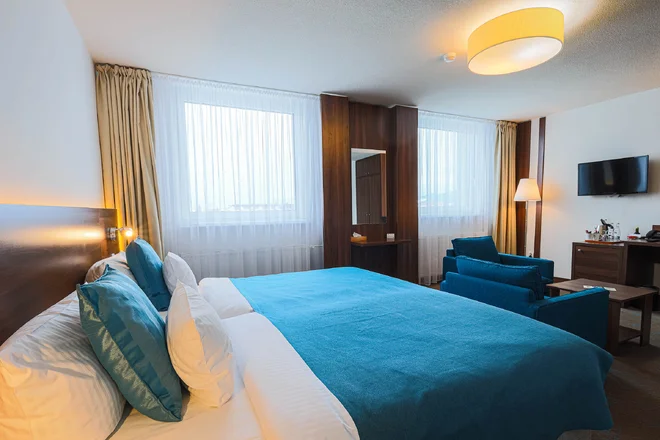 K dispozícii je pestrá ponuka izieb, od štandardnej izby až po prezidentský apartmán. V izbách nechýba pohodlná posteľ či samostatná kúpeľňa ani pekný výhľad na panorámu mesta a Tatry. V apartmánoch sa môžete tešiť na vkusne zariadené miestnosti, posteľ veľkosti king size či obývaciu časť s rozkladacou pohovkou. V tom Prezidentskom nájdete dve spálne, obývaciu časť, barový pult, priestrannú kúpeľňu s vaňou pre dvoch, samostatnú kúpeľňu so sprchou a veľký šatník. Apartmán je dokonalým útočiskom pre všetkých, ktorí milujú pohodlie.