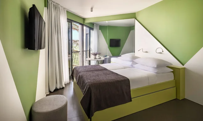 Trohviezdičkový hotel stavia na priateľskej atmosfére, bezchybnej čistote a vysokej úrovni služieb, a je tak ideálnym miestom pre rodinnú dovolenku aj romantiku pre dvoch. Izby sa vyznačujú moderným dizajnom a výraznými líniami zelenej farby, ktorá odkazuje na prímorskú prírodu. Konkrétne sa ubytujete v izbe Comfort (18 m²) s manželskou posteľou a možnosťou jednej prístelky. Poskytne vám všetok komfort vrátane klimatizácie, TV a Wi‑Fi. A ak chcete byť v kontakte s Jadranským morom neustále, rovno zvoľte variant s balkónom s výhľadom na vodnú hladinu.