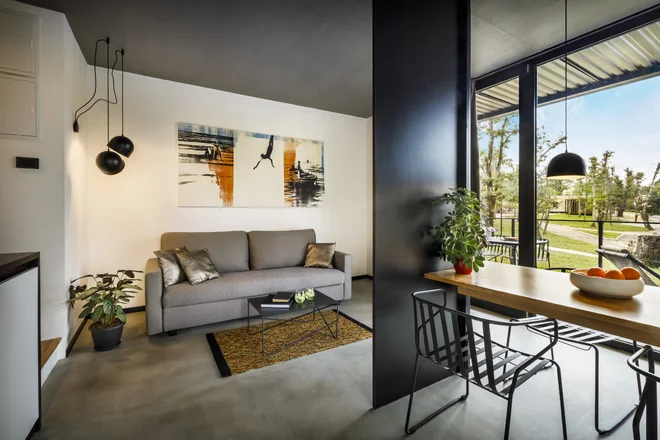 Apartmánové vily vás nadchnú moderným industriálnym dizajnom, ktorý je dokonale prepojený s okolitou zeleňou a prírodou, a to aj vďaka veľkej presklenej stene. Stačí ju otvoriť, nadýchnuť sa stredomorského vzduchu a uvoľniť sa. Do každej z víl sa pohodlne zmestíte v počte 2–8 osôb a nájdete tu všetko, čo by ste mohli potrebovať k príjemnej a relaxačnej dovolenke pri mori.