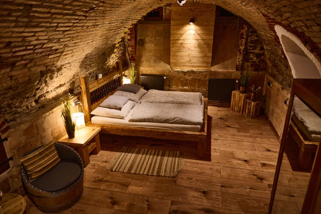 Pivničné priestory sú zrekonštruované tak, aby ste sa tu cítili po všetkých stránkach skvele a aby si oddýchlo nielen vaše telo, ale aj hlava. Zariadené sú na mieru vyrobeným dreveným nábytkom, je tu veľká posteľ (180 × 200 cm), kúpeľňa s vaňou a sprchou, malá chladnička aj set na prípravu kávy a čaju. Pripravenú tu budete mať aj fľašu sektu.