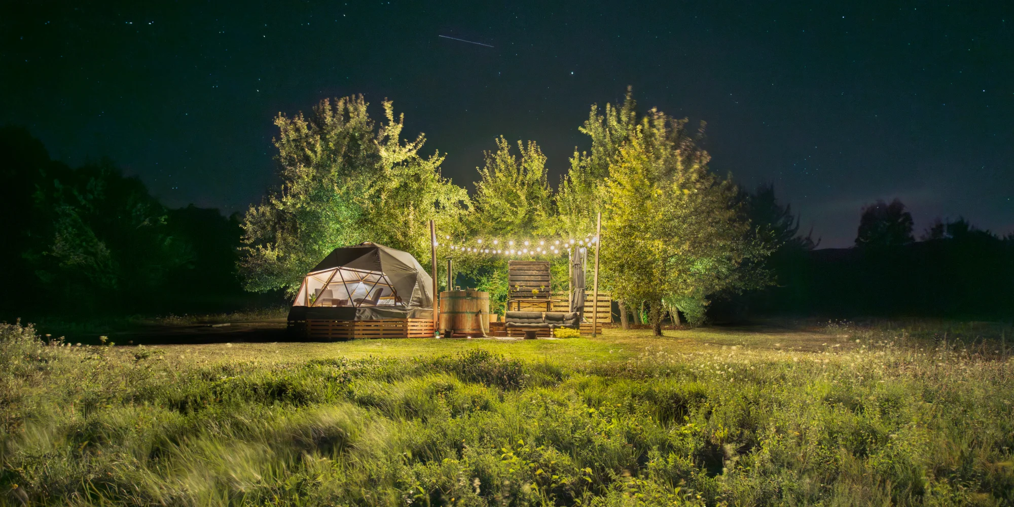 Pobyt v Glamping pointe s raňajkami a kúpacou kaďou