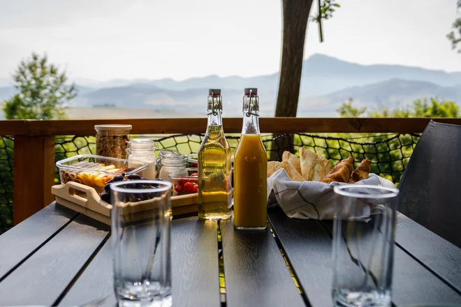Čo by to bol za zážitkový pobyt bez zážitkových raňajok? Ráno vám spríjemní pohľad na piknikový kôš plný dobrôt. Usaďte sa na terasu, vybehnite von na piknik alebo si raňajky vezmite do postele! Ste predsa na dovolenke a tam sa smie všetko. A aby sme nezabudli, dopĺňať tekutiny je tiež veľmi dôležité, preto vás v chatke bude čakať fľaša prosecca, nemáte začo.