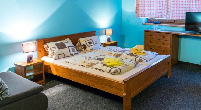 Penzión Gájuz je skvelým miestom, kde môžete stráviť pohodové dni plné leňošenia aj aktívnej turistiky. Pripravené je pre vás komfortné ubytovanie v dvojlôžkovej alebo trojlôžkovej izbe s vlastným balkónom, odkiaľ je krásny výhľad na okolie. Súčasťou vybavenia je manželská posteľ, mini posedenie, TV a bezplatné Wi‑Fi pripojenie na internet. Nechýba ani samostatná kúpeľňa so sprchou a toaletou. Pobyt je vhodný pre 2 až 4 osoby, takže si tu príjemne odpočiniete vo dvojici aj v rodinnom kruhu.