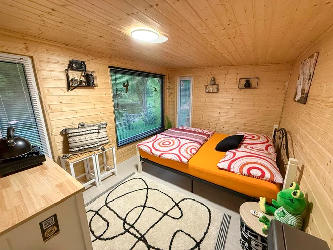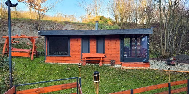 Ubytujete sa v modernom a útulnom drevenom domčeku, ktorý je navrhnutý tak, aby vám sprostredkoval maximálne spojenie s okolitou prírodou. Vďaka presklenej stene môžete priamo z pohodlia manželskej postele sledovať divú zver – možno zazriete plaché srnky či zajace, alebo sa jednoducho necháte unášať pohľadom na pokojnú hladinu rybníka.