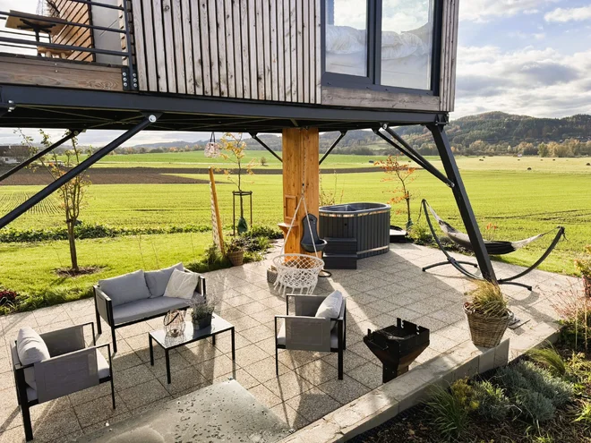 A bude sa aj oddychovať. K tomu vám skvele poslúži súkromný vyhrievaný sud. Všetok stres rozpustíte v saune, ktorá je spoločná pre posed aj ďalšie chatky na pozemku.