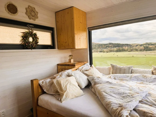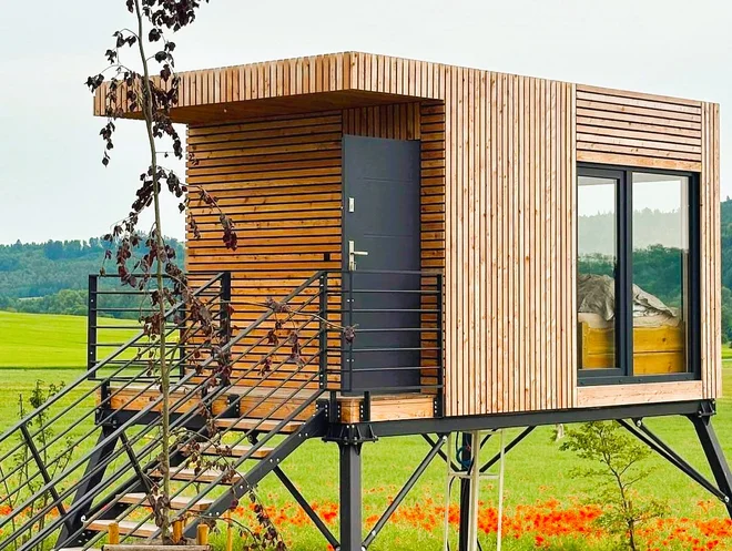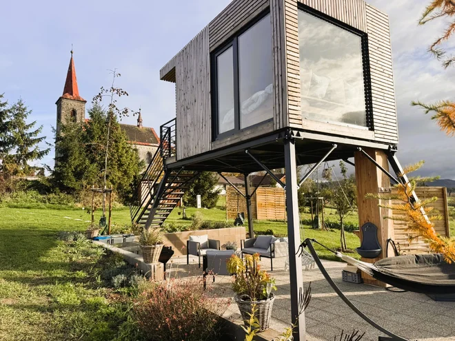 Domček medzi ovocnými stromami je ideálnym úkrytom pre zamilované páry, ktoré si chcú oddýchnuť od stresu aj elektronických zariadení. Jeho dominantou je veľká manželská posteľ doplnená o posedenie a úložný priestor pre vaše nevyhnutnosti. Na Wi‑Fi sa tu nepripojíte, televíziu nezapnete, doprajete si však blahodarný digitálny detox a zharmonizujete svoje telo aj dušu.
