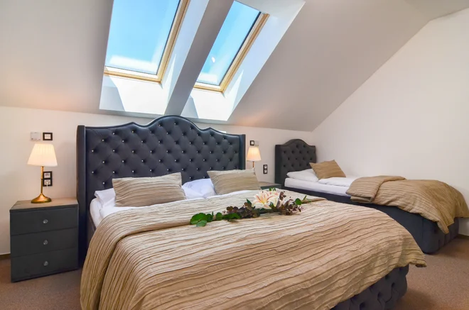 Ubytujete sa v útulnej izbe, kde budete mať k dispozícii postele, rozkladaciu pohovku, TV, minibar, vlastnú kúpeľňu a WC. Samozrejmosťou je aj Wi‑Fi pripojenie, aby ste zostali v spojení a mohli rovno zdieľať fotky.