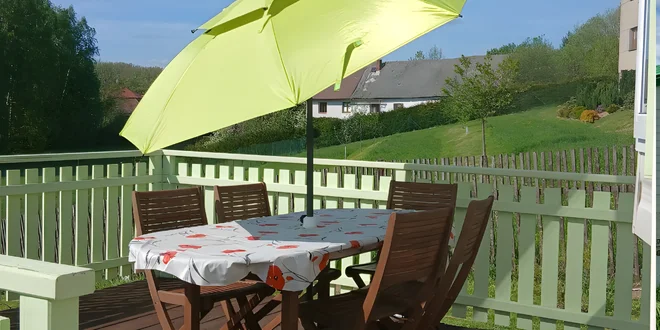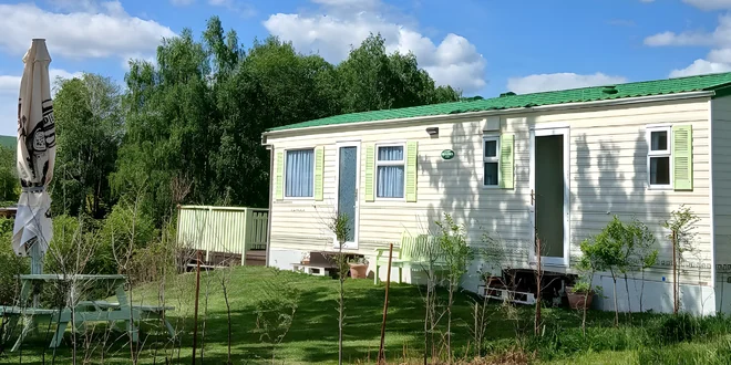 Rodinná pohoda na Vysočine: mobilný domček až pre 5 osôb s terasou