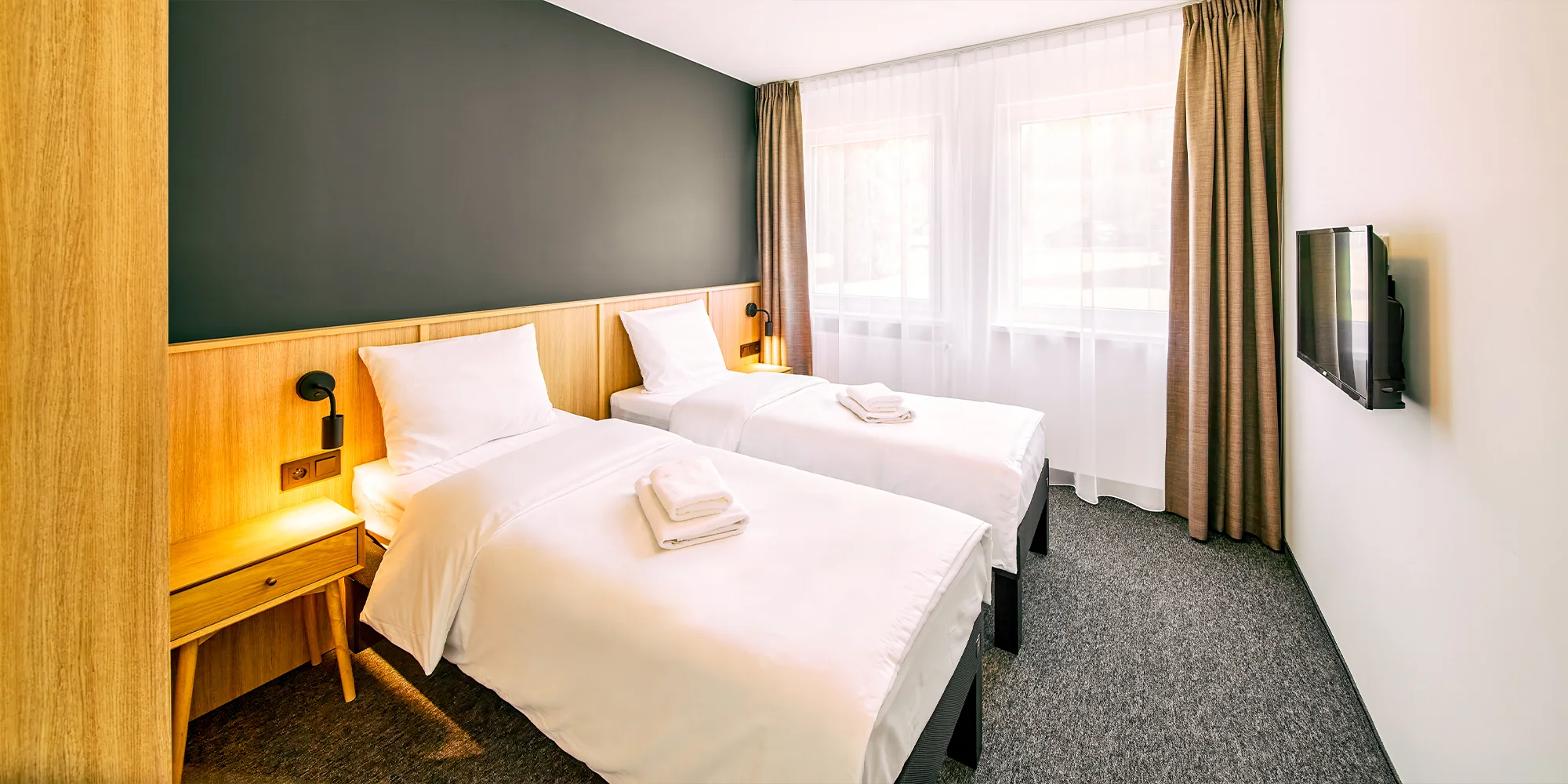 Čakajú vás komfortné dvoj alebo trojlôžkové izby s plochou televíziou a súkromnou kúpeľňou. Vyraziť sem môžete vo dvojici alebo aj so svojím potomkom. Izby sú vkusné a moderné s dôrazom na minimalizmus. Ponúkajú dostatok priestoru na oddych aj odloženie všetkej batožiny. Z väčšiny budete mať vskutku impozantný výhľad na hory. V celom areáli môžete využívať bezplatné pripojenie na Wi‑Fi.