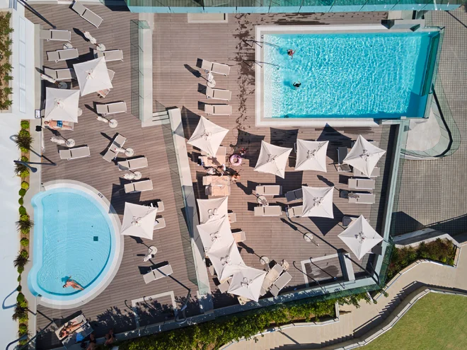 Hotelové relaxačné centrum Oleum Wellness & SPA je doslova raj pre dušu aj telo. Čaká vás krytý aj vonkajší bazén s výhľadom na more, nechýba ani detský bazénik a vírivka. Wellness zóna je vám prístupná každý deň od 8:00 do 22:00. Okrem wellness si môžete užiť aj špičkovo vybavené fitness.