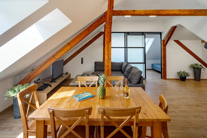 Z chodby sa dá vstúpiť na spoločnú terasu, kde môžete posedieť, kochať sa výhľadom do prírody a možno si aj pripraviť nejakú dobrotu na grile. O raňajky sa však nemusíte nijako starať, tie vám tu pripravia každé ráno. Podávajú sa formou bufetu, takže sa tešte, že si vyberiete presne to, na čo budete mať chuť a čo vám dodá energiu na výlety. Ak sa nechcete ani večer starať o jedlo, zvoľte balíček s polpenziou – večer vás budú čakať jednochodové večere v reštaurácii Dvorek.