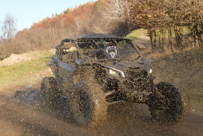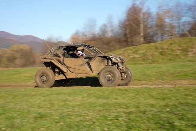 Bugina CAN-AM MAVERICK X3 RS TURBO je síce na pohľad malá, ale ukrýva v sebe výkon kamiónu! Pod kapotou jej cvála 250 koní a je vybavená pretekárskymi FOX tlmičmi, ktoré sa prispôsobia každému terénu. Vyskúšajte, aké je to brázdiť cesty aj necesty na tomto monštre!