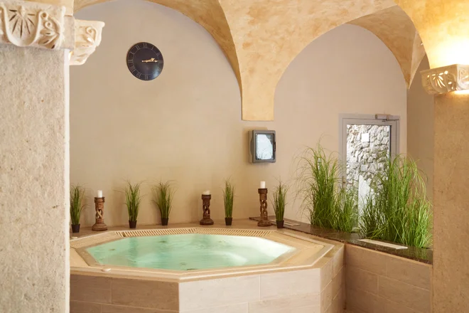 Na zámku vás budú kráľovsky rozmaznávať. Do wellness s vírivkou, bazénom a parnou saunou máte počas celého pobytu neobmedzený vstup. V prevádzke je od 8 do 22 hodín, takže oddychovať môžete doslova od rána do večera. Len vstup do parnej sauny si dohodnite vopred na recepcii.