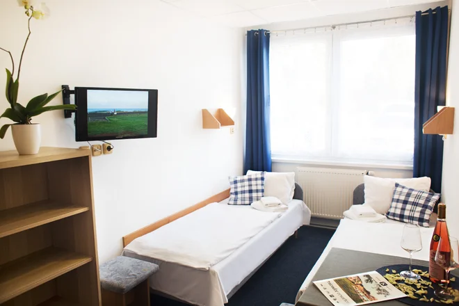 Ubytujete sa v izbe pre 2 až 3 osoby – postele sú oddelené, na požiadanie je však možné vytvoriť manželskú posteľ. Súčasťou vybavenia je vlastná kúpeľňa so sprchou a toaletou a nechýba ani televízia a Wi‑Fi pripojenie zdarma.