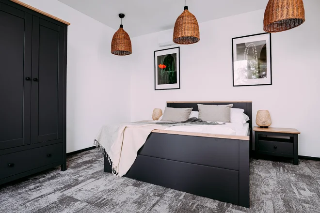Vyberte si z rôznych možností ubytovania presne podľa svojich predstáv – od elegantných izieb, cez priestranné apartmány až po útulné domčeky s terasou. Základ tvorí komfortná Izba Deluxe s dvoma posteľami, kúpeľňou so sprchou, chladničkou, TV a kanvicou – ideálna pre dvojicu. Viac priestoru ponúka Štúdio (26 m²), kde sú k dispozícii dve lôžka a rozkladací gauč ako prístelka.