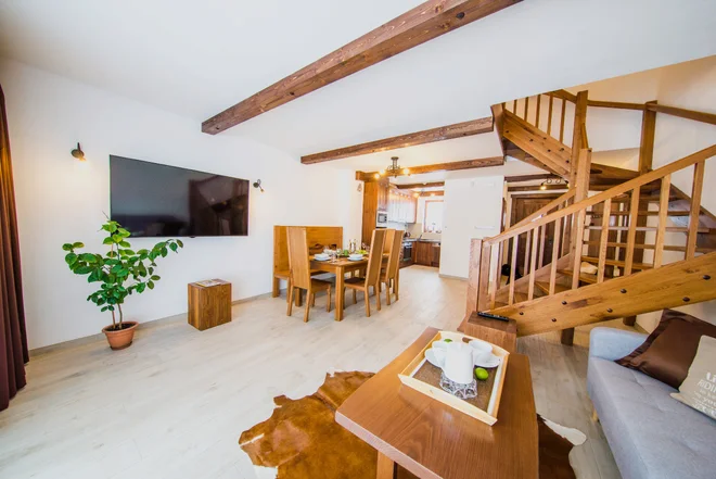 Pre svoj dokonalý pobyt si môžete zvoliť apartmán Premium (37 m²) s jednou samostatnou spálňou, či mezonetový Deluxe (80 m²) alebo Superior (80 m²), ktoré majú dve spálne na poschodí. Vo všetkých si užijete krásne a originálne vybavenie z prírodného dreva, ktoré je zladené do jednotného celku. Vo všetkých typoch ubytovania je samozrejmosťou plne vybavená kuchynka vrátane umývačky riadu, kúpeľňa so sprchou a toaletou a tiež prístup na terasu.