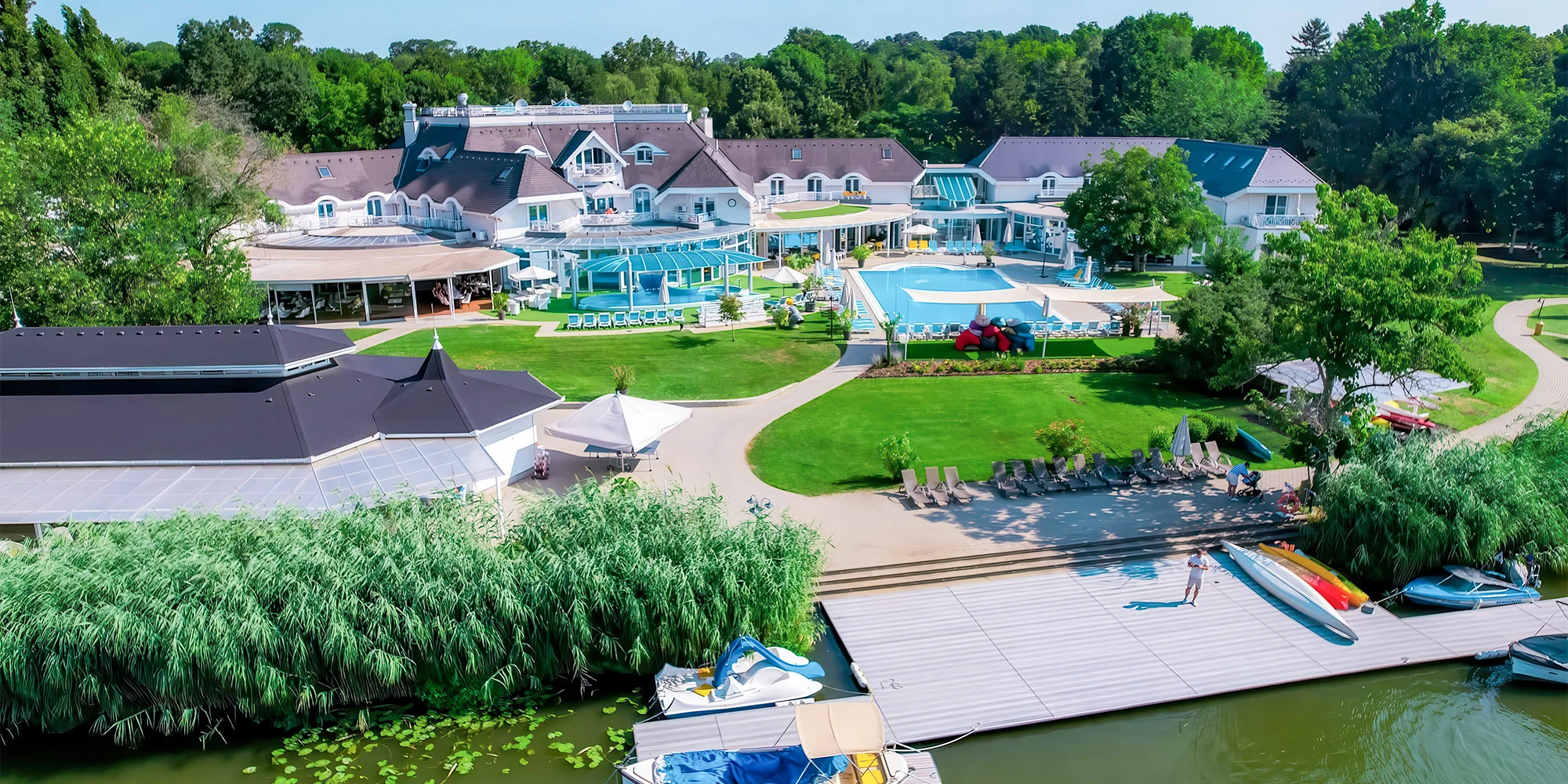 Doprajte si zážitok z výletu po malebnom okolí aj na dvoch kolesách – v hoteli si môžete za menší poplatok prenajať klasické bicykle aj elektrobicykle. Aktívni hostia sa môžu vydať na cyklotrasu po protipovodňových hrádzach alebo si naplánovať výlet k pamätníku označujúcemu geografický stred niekdajšieho Uhorska. Súkromná 200-metrová pláž na brehu rieky Körös ponúka viac než len opaľovanie. Môžete si tu zaplávať, skúsiť rybolov alebo si požičať vodný bicykel, kajak, kanoe či paddleboard. Pre tých, čo uprednostňujú pohodlnejší výlet po rieke, je k dispozícii elektrická loď na prenájom. Priamo z hotelového móla sa tak môžete vydať na pokojnú plavbu po riečnych zákutiach. Do 50 km od hotela tiež objavíte najväčšiu botanickú záhradu Maďarska – Arborétum Szarvas, kde sa popri pôvodných tisoch a cédroch pýši aj viac než storočná sekvoja. Národný park Körös-Maros zasa poteší milovníkov vtáctva a prírodných krás.