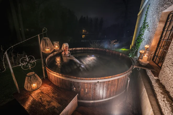 • Vonkajšia vírivka v cédrovej kadi (15:00–22:00)