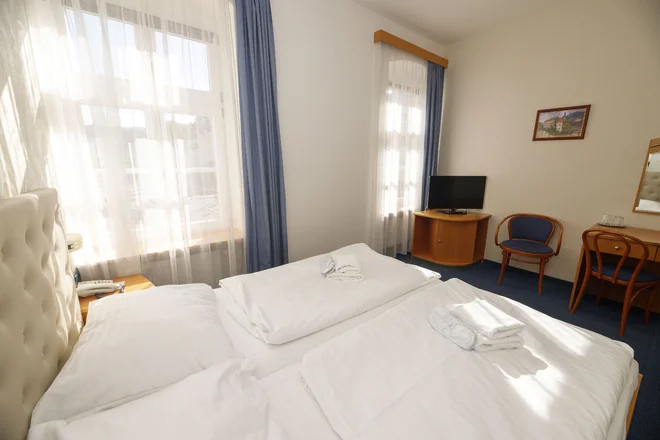 Ubytujete sa v pohodlnej izbe podľa počtu osôb, s romantickým výhľadom na kúpeľnú kolonádu. Samozrejmosťou je samostatná kúpeľňa so sprchou a toaletou, LCD televízor, pripojenie na Wi‑Fi a tiež minichladnička, ktorú vám na požiadanie (za poplatok) naplnia minibarom.