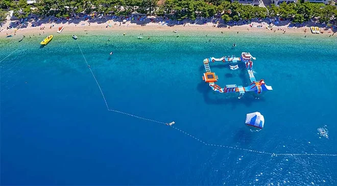 Ihneď po raňajkách sa dostatočne najedení vyberte rovno na piesočnato-kamienkovú pláž, kam to máte len 200 metrov. Čas sa tu dá tráviť plávaním a opaľovaním, ale aj rôznymi vodnými športmi – za príplatok vás odvezú napríklad na lodi v tvare banánu či vodných lyžiach. Prenajať si môžete aj bicykle na objazd okolia či ihrisko na plážový volejbal.