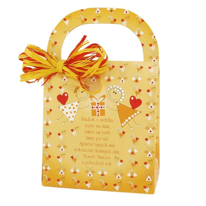 Všetky čaje k vám dorazia zabalené v elegantnej taške s veselými motívmi snehuliaka, anjelov alebo mačiek vo vianočnej čiapočke. Vybrať si môžete aj kominára pre šťastie a ďalšie motívy. V ponuke nájdete aj variant s jedným čajom a mandľami v čokoláde so škoricou pre tých, ktorí si radi zamaškrtia.