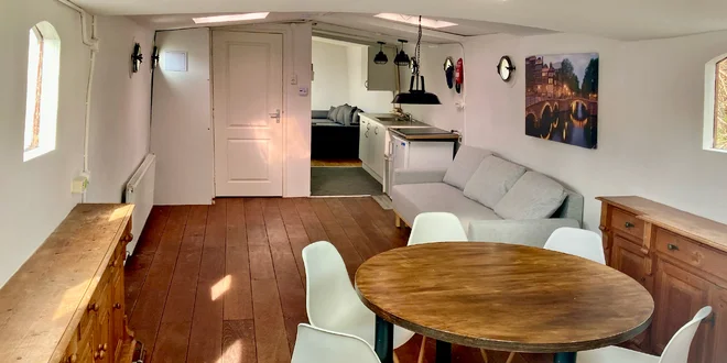 V histórii si mohli námorníci o dobrom jedle nechať len snívať. Tie časy sú však dávno preč… Síce budete bývať na vode, ale aj tak si pochutnáte na dobrotách – je tu plne vybavená kuchynka s elektrickou varnou doskou, chladničkou, mikrovlnkou a kuchynskými potrebami. No a ešte jedna super informácia? Na hornej palube hausbótu (pri nástupe na loď) je príjemná teraska s posedením, ktorá priamo pozýva na to dať si drink alebo večeru a pozorovať prechádzajúce lode. Alebo z nej rovno skočíte šípku a osviežite sa vo vode?