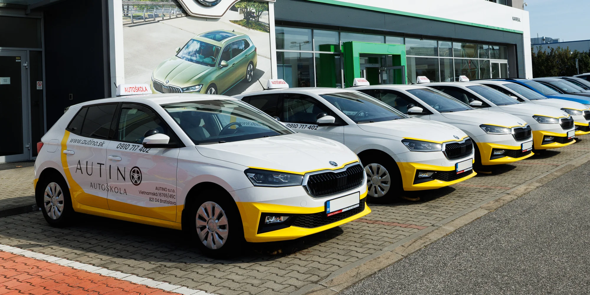 - Autoškola Autino sa nachádza na ulici Sabinovská 8 – oproti Kauflandu na Trnavskej ulici (budova susediaca so ŠKODA budovou).