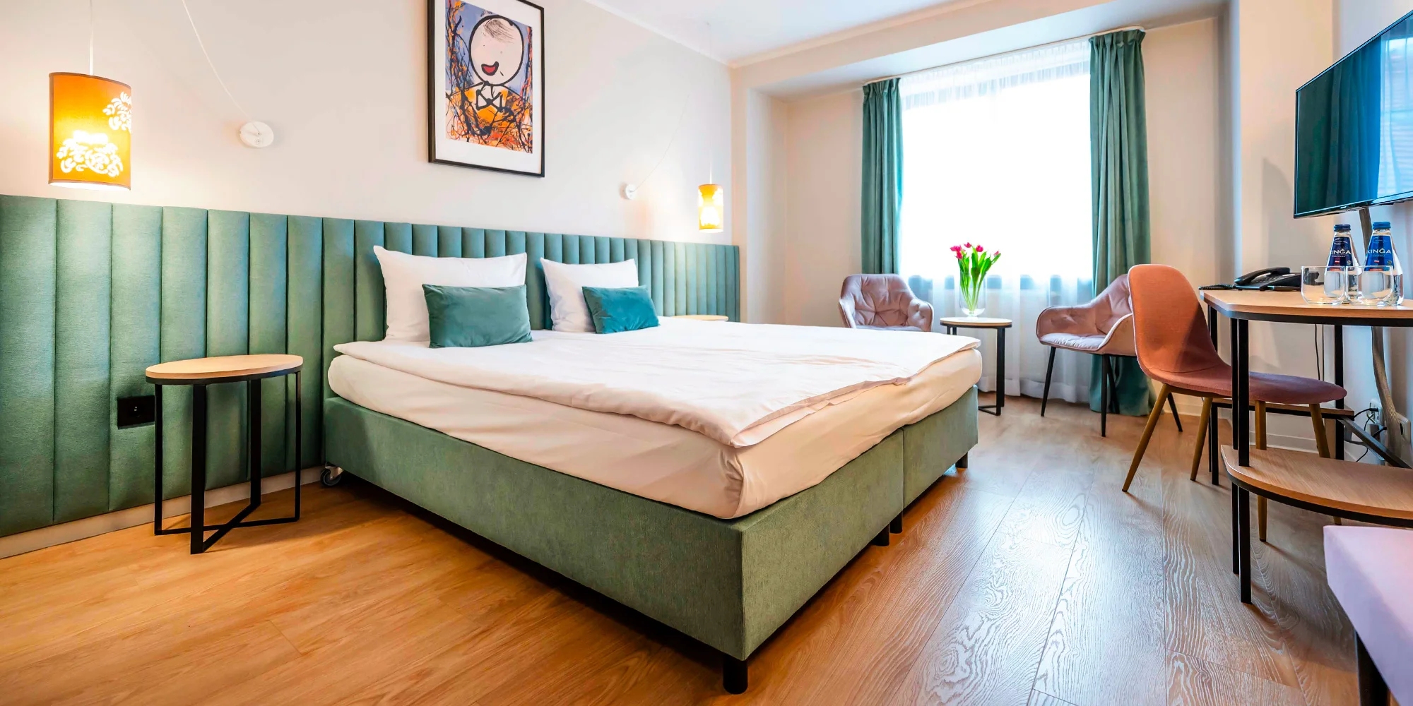Poliaci sú všeobecne známi tým, že vás pohostia na skutočne nadštandardnej úrovni. Presne to môžete očakávať aj v hoteli, kde máte zabezpečené ubytovanie v dvojlôžkovej izbe Deluxe s alebo bez klimatizácie. Interiér je zariadený v modernom štýle s dizajnovými prvkami, vďaka čomu sa tu budete cítiť viac než príjemne. O kvalitný spánok sa postará manželská posteľ, prípadne oddelené lôžka. Všetky izby majú písací stôl, TV s plochou obrazovkou, priestor na posedenie a set na prípravu kávy alebo čaju. Dostatok priestoru ponúka aj šatníková skriňa. Samozrejmosťou je tiež bezplatné Wi‑Fi pripojenie na internet. K izbám patrí i vlastná kúpeľňa so sprchovým kútom či vaňou, toaletou, fénom na vlasy a hotelovou kozmetikou.