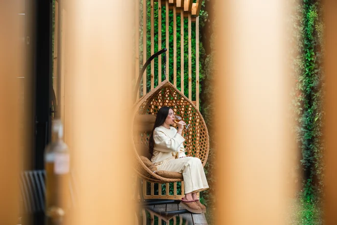 Interiér je len jedna vec, glamping poteší aj exteriérom. Ako oáza pokoja poslúži zdieľaná záhrada a na ranné posedenie pri káve či večerné pozorovanie hviezd zas bude lákať terasa s hojdacím kreslom. Nebojte sa, v samotnom domčeku vám bude dobre pri akomkoľvek počasí –⁠⁠⁠⁠⁠⁠ v lete vás schladí klimatizácia, v zime zase zahreje podlahové kúrenie.
