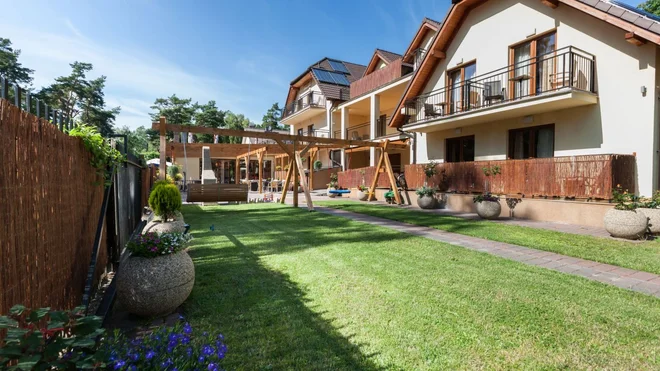 Na relax nabáda aj malebná záhradka, na ktorej sa nachádzajú pohodlné kreslá a o kúsok ďalej ešte hojdačky a trampolína pre deti. Ideálna príležitosť na to, aby ste potomkov poslali vybiť energiu, zatiaľ čo vy ju načerpáte. Keby vonkajším hrám neprialo počasie, nájdete jednu herňu aj vo vnútri.