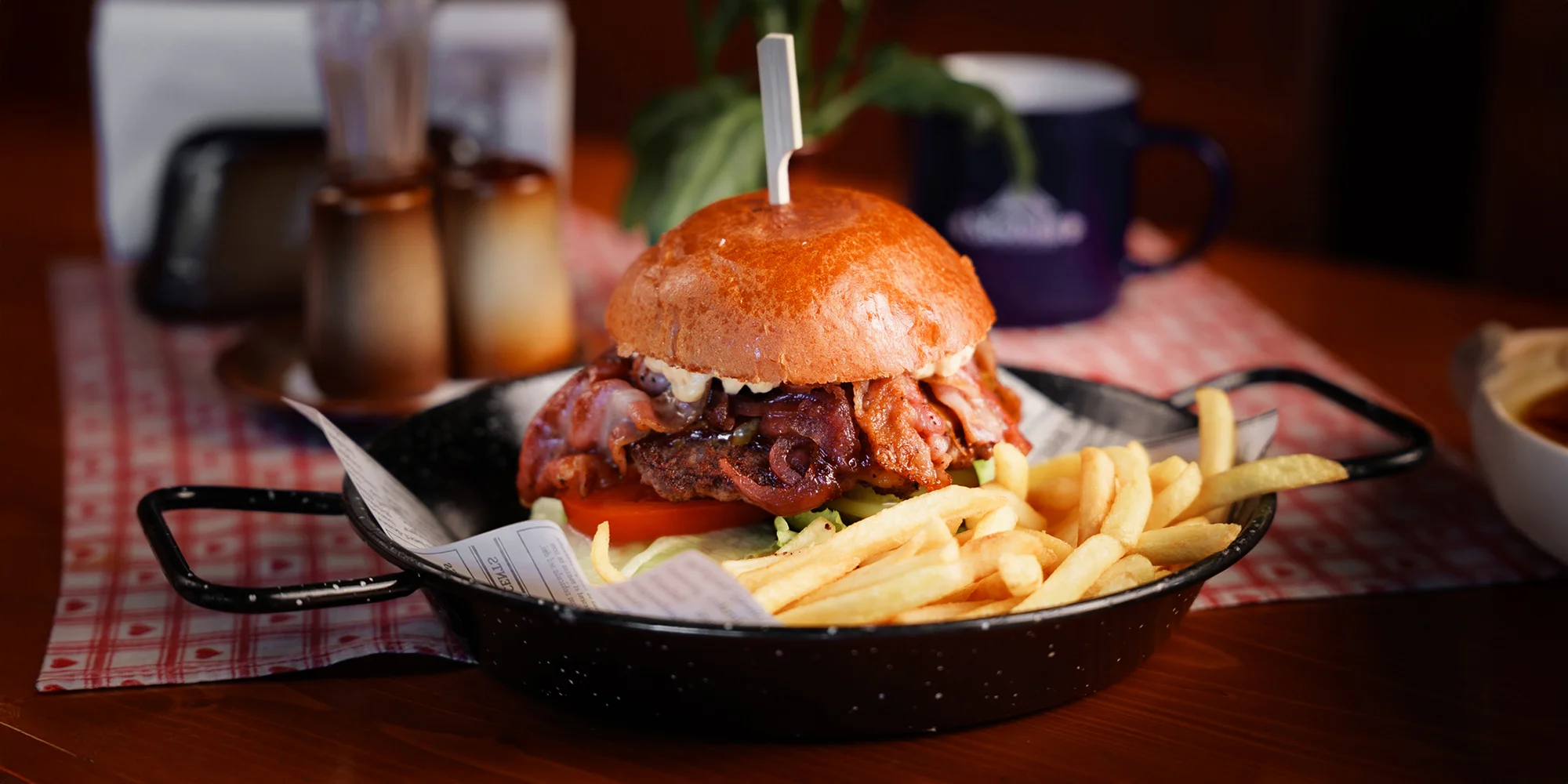 - 1 x Stodola burger - 150 g hovädzie mäso, žemľa, slanina, cheddar, zelenina, cibuľové chutney, slaninová omáčka, majonéza