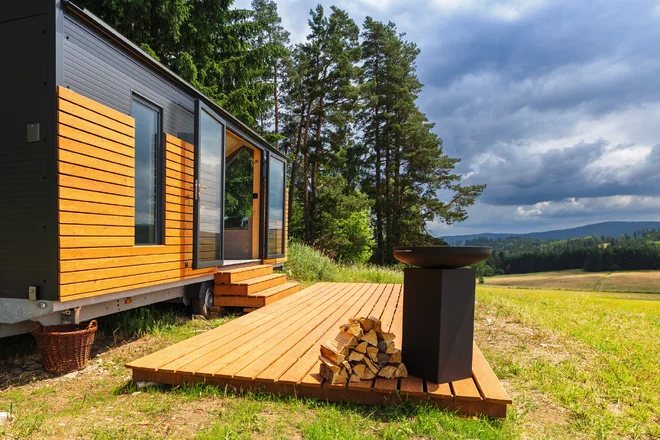 Tiny house Honzík: plne vybavený domček pri lese s terasou a výhľadom na pastviny