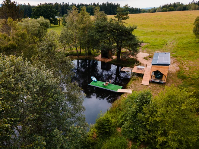 Tešte sa na maximálny komfort aj dokonalé súkromie. Domček je zasadený do krajiny pri lese a patrí k nemu malý rybníček. V ňom si môžete zaplávať, osviežiť sa alebo sa k nemu len natiahnuť na ležadlá po relaxácii vo vonkajšej saune, ktorú máte neobmedzene k dispozícii. Počas teplých mesiacov tu pre vás bude pripravený aj jeden paddleboard.