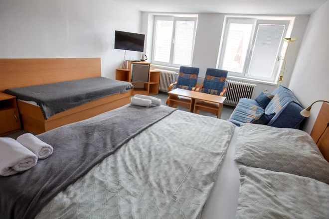 V hotýlku nájdete dvojlôžkovú alebo trojlôžkovú izbu s možnosťou prístelky, štvorlôžkovú rodinnú izbu alebo veľkú rodinnú izbu so štyrmi posteľami a rozkladacou pohovkou. Každá izba má vlastnú kúpeľňu so sprchovacím kútom a toaletou. K dispozícii budete mať TV s plochou obrazovkou a Wi‑Fi. Z okien izieb budete mať krásny výhľad na okolité hory.