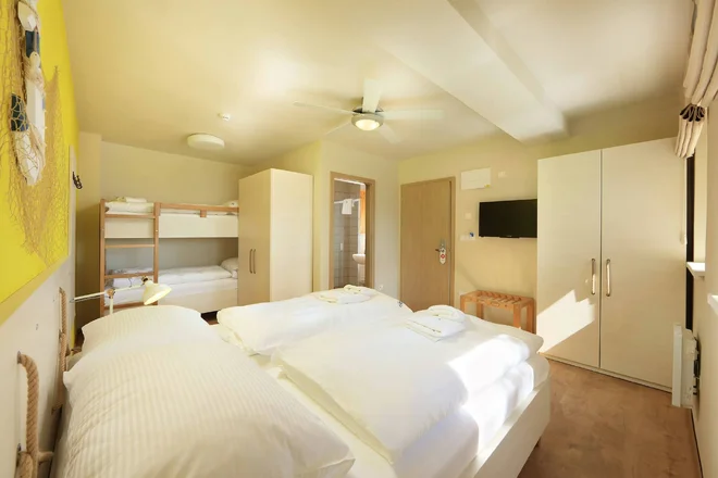 Pripravená pre vás bude dvojlôžková izba v námorníckom štýle v depandancii Maják. Budete mať k dispozícii vlastnú kúpeľňu so sprchovacím kútom a fénom, k vybaveniu všetkých izieb patrí televízia a nechýba ani minibar, telefón a Wi‑Fi pripojenie.