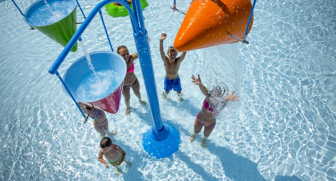 A keď už je reč o bazéne, ten je vám samozrejme tiež plne k dispozícii. Vodné radovánky si užijete na ploche viac ako 700 m² a oči sa tu rozžiaria aj milovníkom tobogánov a šmykľaviek. Ležadlá a slnečníky pri bazéne máte samozrejme zdarma. Resort ponúka doslova more zábavy aj pre cyklistov (požičajú vám tu bicykle) a ďalších vášnivých športovcov. Na tunajších kurtoch a ihriskách si zahráte tenis, futbal alebo volejbal.