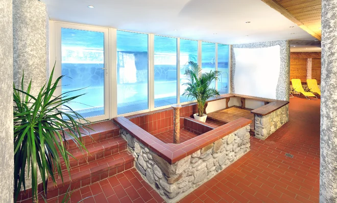 - krytý bazén s masážnymi tryskami a vodopádom (7:00–19:00)