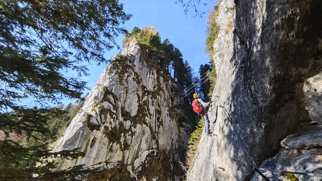 - Spielmäuer: Deň začnete ferratou Tristans Kirchbogensteig (obtiažnosť C), na ktorej si vyskúšate krásnu lavičku s výhľadom a jaskynné vhĺbenie. Nasleduje náročnejší úsek Felix Himmelsleiter (obtiažnosť D), kde preleziete 10-metrový lanový rebrík s výhľadom do údolia.