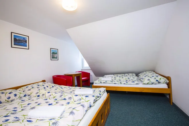 Ubytujete sa v jednoducho zariadených izbách s kúpeľňou. K dispozícii sú dvoj- až sedemlôžkové izby s prístelkou, ktoré sú ideálne nielen pre rodiny s deťmi.
