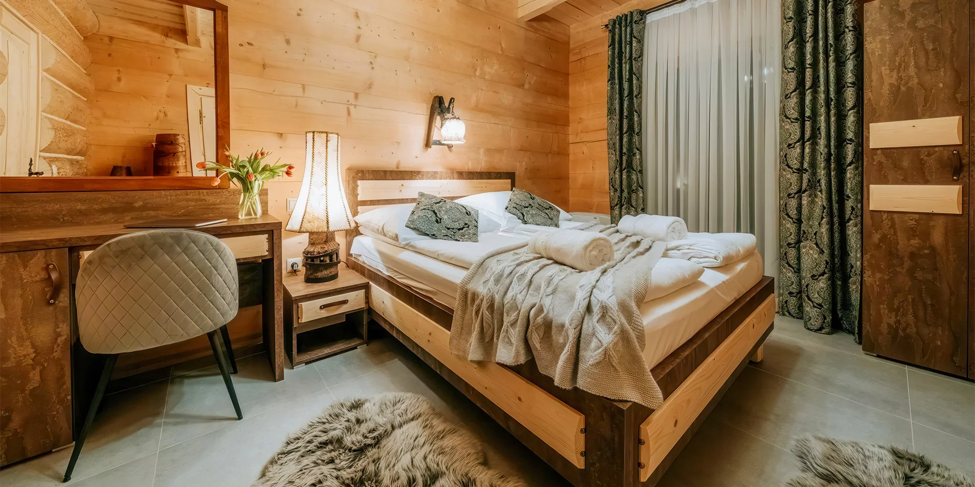 Ubytovanie je ako stvorené pre každého jedného hosťa – od párov túžiacich po romantickom úniku až po väčšie rodiny či skupiny priateľov. Všetky izby sú zariadené v útulnom horskom štýle, v ktorom dominujú drevené prvky, prírodné farby a príjemná domáca atmosféra. Samozrejmosťou sú vlastné kúpeľne so sprchovacím kútom, z ktorého si môžete vychutnať výhľad na okolitú krajinu. Bezplatné pripojenie na Wi‑Fi a parkovanie zadarmo sú samozrejmosťou. Na izbe vás ako príjemný bonus čaká malé sladké prekvapenie, ktoré ešte viac spríjemní začiatok vašej dovolenky.