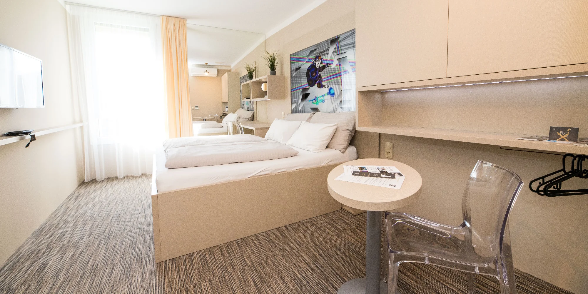 Preskúmajte aj ďalšie zákutia hotela a zašite sa napríklad do tunajšieho „obývačky“, kde vás čaká knižnica plná poézie, spoločenské hry a ďalšie prekvapenia. Urobte si pohodlie na gauči, pustite si hudbu alebo film a bavte sa podľa seba. Okrem toho sa tu čas od času konajú zaujímavé akcie napríklad s cestovateľskou tematikou.